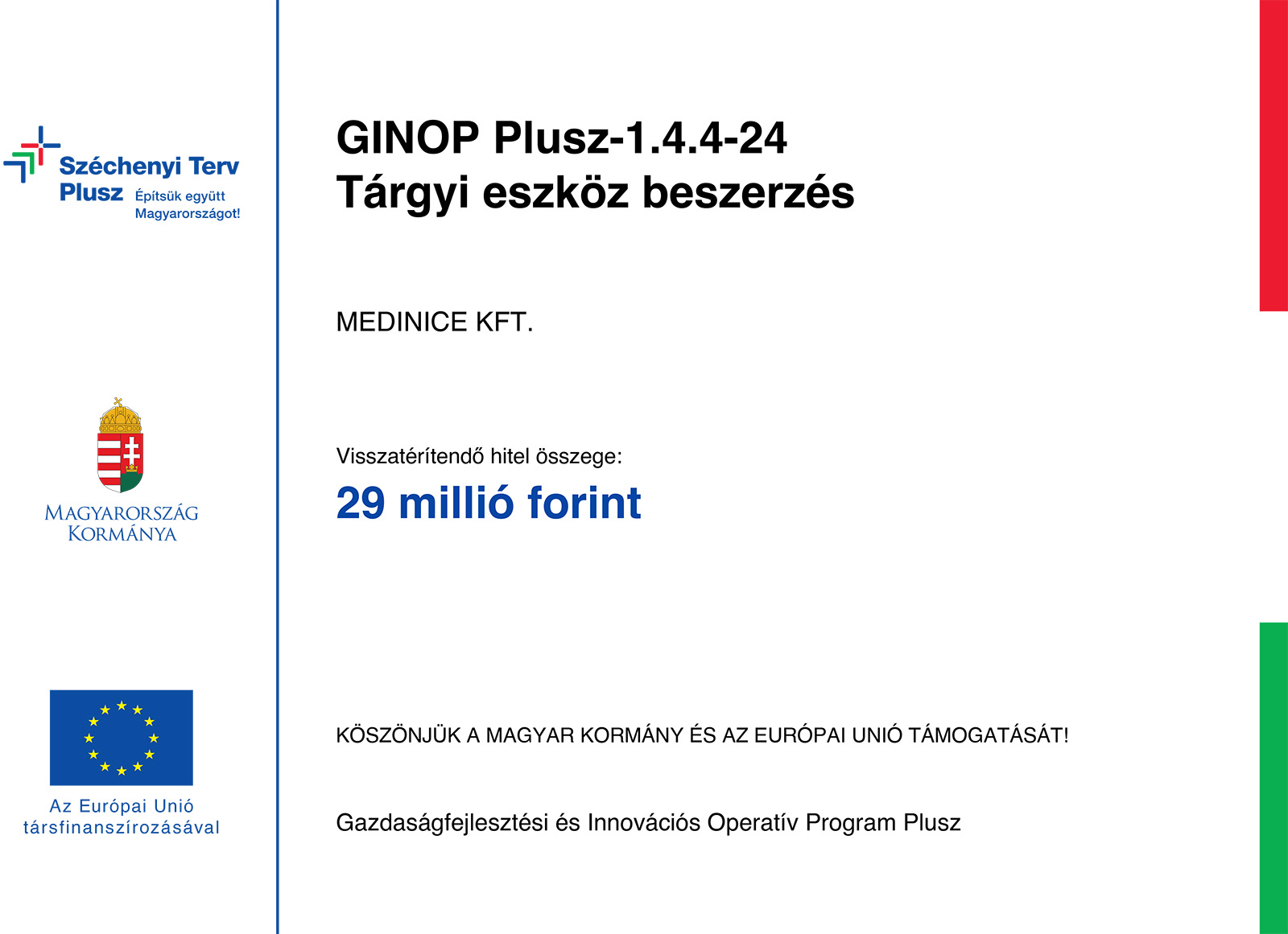 GINOP Plusz-1.4.4-24 - Tárgyi eszköz beszerzés  |